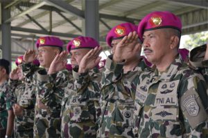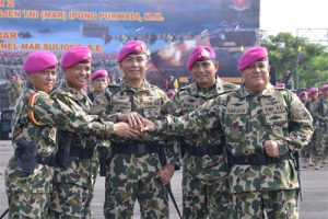 Wakil Komandan Panhkalan Utama TNI AL V (Wadan Lantama V) Kolonel Marinir C.T.O Sinaga mewakili Komandan Pangkalan Utama TNI AL V (Danlantamal V) Laksamana Pertama TNI Edwin, S.H,.M.Han menghadiri Upacara Serah Terima Jabatan Komandan Pasmar 2 dan Dankolatmar di Lapangan Apel Ksatrian Marinir Soetedi Senaputra Karangpilang Surabaya, Jumat (15/2).