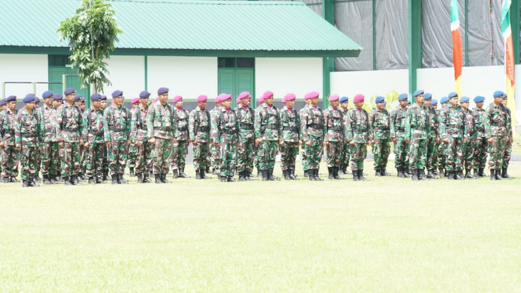 Koarmada II. Manado, Selasa (19/02/2019). Danlantamal VIII diwakili Wadan Lantamal VIII Kolonel Marinir Edi Juardi menghadiri Upacara Purna Tugas Satgas Pulau Terluar TA. 2018 yang bertempat di Lapangan Makodam XIII MDK, bertindak sebagai Irup Pangdam XIII/MDK Mayjen TNI Tiopan Aritonang dan bertindak sebagai Komandan Upacara Danyonif 713/ST Mayor Inf Dony Gredinand.
