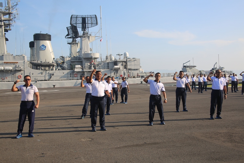 Agar fisik prajurit tetap bugar dan terjaga prima, Asisten Intelijen (Asintel) Pangkoarmada II Kolonel Laut (P) Tjatur Soniarto pimpin olah raga bersama seluruh prajurit Koarmada II yang dilaksanakan di Dermaga Madura Koarmada II. Jum’at (22/02/2019).