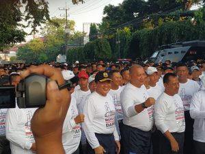 Komandan Pangkalan Utama TNI AL (Danlantamal V), Koarmada II, menghadiri Olah Raga bersama dalam rangka memperingati hari Bhayangkara ke 73 Tahun 2019 dan Deklarasi  Anti Kerusuhan ” Jogo Suroboyo, Jogo Jawa Timur dan Untuk Indonesia Damai” bersama Forkopimda Jawa Timur, jumlah ± 5.000 orang penanggung jawab Irjen. Pol. Drs. Luki Hermawan, M.Si (Kapolda Jatim) di Monumen Polisi Istimewa Jl. Polisi Istimewa Surabaya, Minggu (16/6).