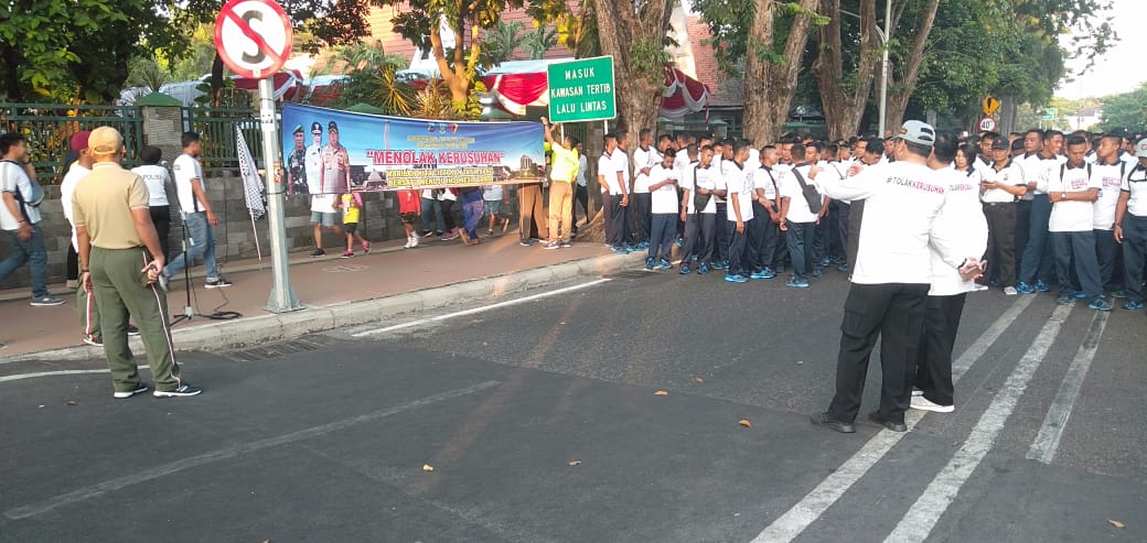 Senam bareng bersama Forkopimda Jawa Timur. Deklarasi Gerakan Damai masyarakat Jatim menolak kerusuhan untuk Indonesia Maju oleh Dra. Hj. Kofifah Indar Parawansyah, M.Sc (Gubernur Jatim), Mayjen TNI Wisnoe Prasetja Boedi (Pangdam V/Brawijaya) dan Irjen. Pol. Drs. Luki Hermawan, M.Si (Kapolda Jatim) bersama Forkopimda Jatim dilanjutkan penandatanganan Deklarasi dan Pelepasan merpati putih, pelepasan balon, adapun isi deklarasi,TolakKerusuhan pernyataan bersama untuk menjaga situasi kambtibmas yang aman dan kondusif diwilayah jawa timur maka kami elemen masyarakat wilayah jawa timur sepakat untuk menyatakan sikap bersama sama menolak kerusuhan