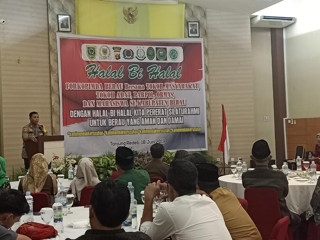 Dalam sambutannya Bupati Berau yang diwakili oleh Asisten II menyampaikan bahwa masyarakat Kab. Berau menolak kerusuhan dalam bentuk apapun, perusuh adalah musuh kita bersama. Apabila ada perusuh akan di proses sesuai sengan hukum yang berlaku dan masyarakat harap bersabar menunggu sidang MK serta tidak melakukan kegiatan yg melanggar aturan dan bersama sama menjaga situasi Kan. Berau agar tetap kondusif.