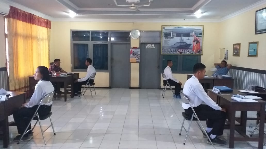 Lanal Banyuwangi, Lantamal V, Koarmada II, sebanyak 41 orang peserta Calon Taruna/Taruni AAL dan Caba Pria/Wanita gelombang I tahun 2019 mengikuti seleksi tahap II yang meliputi test Semapta,mental Ideologi (MI) dan Rikmin Pangkalan Angkatan Laut (Lanal) Banyuwangi, Lantamal V, Koarmada II, oleh tim seleksi dari Lembaga Penyediaan Tenaga TNI Angkatan Laut (Lapetal) di gedung Wisma Bahari, Selasa (18/6).