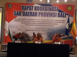 Acara Rakor SAR dibuka oleh Direktur Operasi BNPP, Brigjen TNI (Mar) Budi Purnama, S.Pi, M.Agr dan dihadiri peserta undangan dari instansi TNI/Polri, BNPPD Prov. Bali, BMKG Bali, BPBD Prov. Bali, PMI, Balawista, KSOP Kelas III Benoa, KPLP Benoa dan tamu undangan sekitar 100 orang.