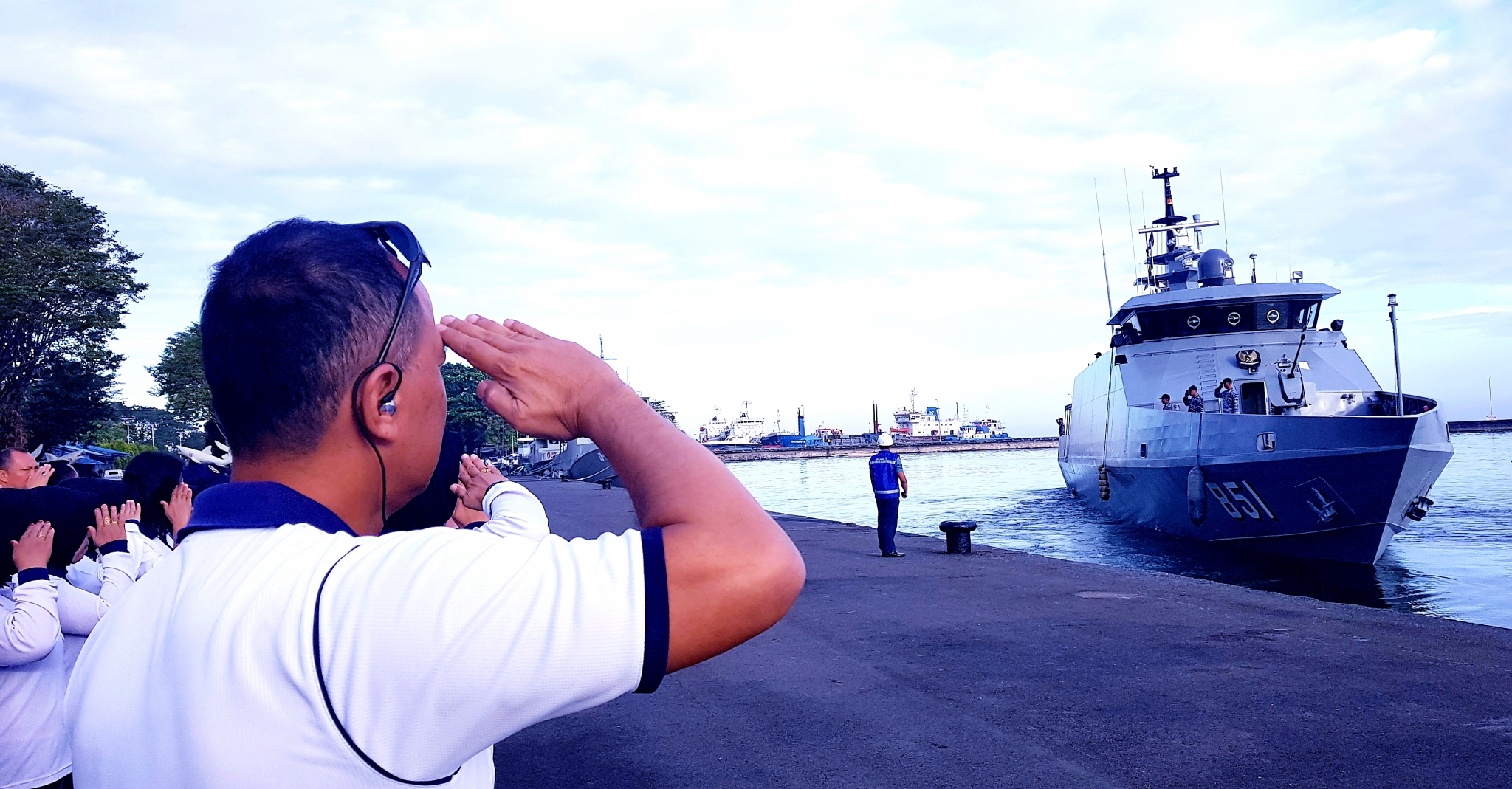 “Walaupun sedang melaksanakan olahraga , tidak ada salahnya kita berhenti sejenak untuk memberikan penghormatan sebagai suatu bentuk respect terhadap kapal perang KRI Sidat-851 yang akan berangkat melaksanakan tugas mulia dalam menjaga perairan Indonesia ini”, ujar Wadan Lantamal VI