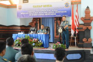 Danlanal Denpasar Bali dalam sambutannya menyampaikan ucapan terima kasih atas kunjungan Danlantamal V Surabaya ke Mako Lanal Denpasar, serta ucapan selamat dari Danlanal Denpasar beserta Prajurit Lanal Denpasar kepada Danlantamal V Surabaya atas jabatan barunya sebagai Danpuspenerbal.