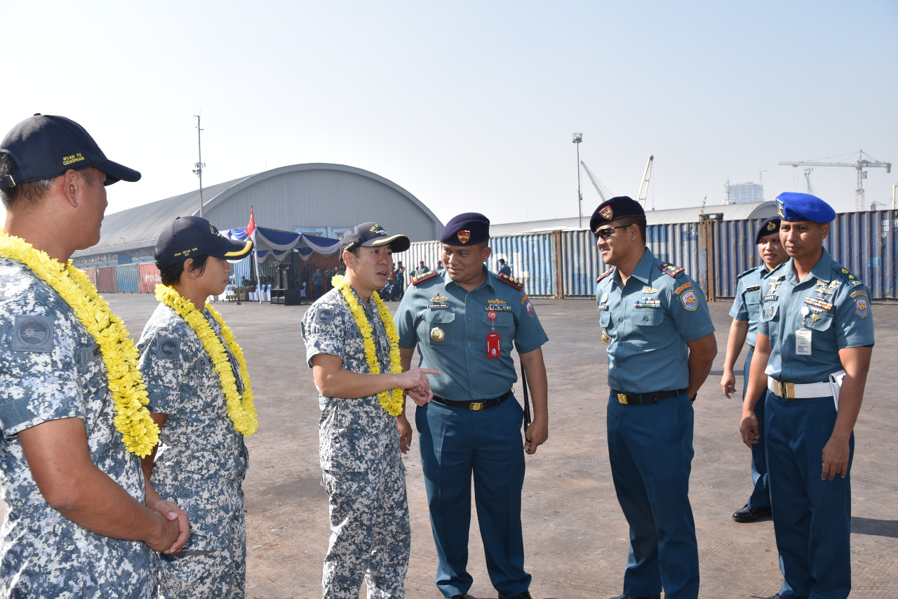 Hadir dalam penyambutan Dan KRI Sultan Iskandar Muda, Dan KRI Nala, Dan KRI Nuku, LO Kaprang Singapura Mayor POM Aang, Pamen/Pama Sops Lantamal V, 1 SST Yonmarlan V Sby, Disayahal Lantamal V, 1 SST Merflug TNI AL , 1 SST Korsik TNI AL dan Deputasi Pa, Ba, Ta.