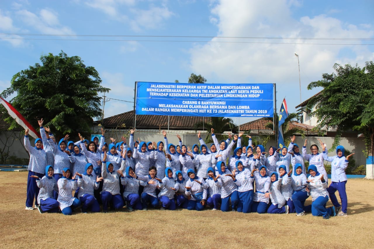 Menyambut HUT Ke 73 Jalasenastri tahun 2019, Jalasenastri Cabang 6 Korcab V DJA II pangkalan TNI AL (Lanal) Banyuwangi gelar olahraga bersama dan berbagai lomba di Mako Lanal Banyuwangi, Selasa (13/8).