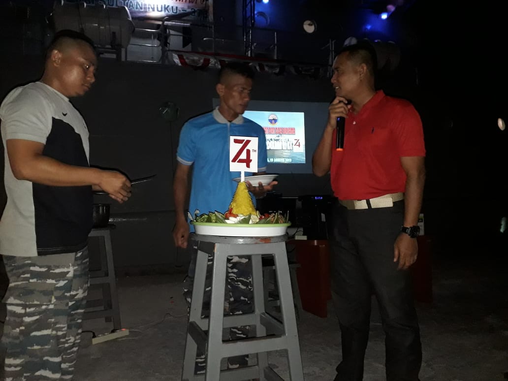 “ Bersyukur bukan hanya masih dipertemukan dengan bulan ramadhan maupun hari ulang tahun prajurit, namun juga bersyukur masih dipertemukan dengan 17 Agustus 2019 atau HUT RI yang ke-74 “, ujar Komandan KRI Sultan Nuku-373.
