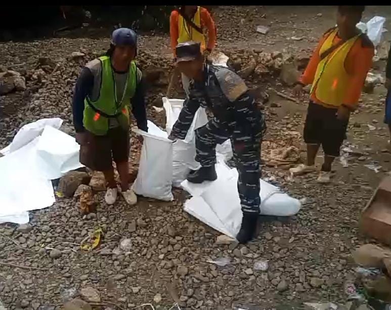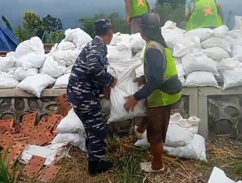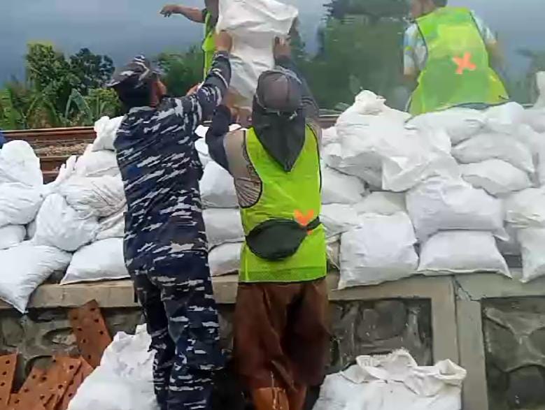 Banjir yang mengepung sejumlah daerah di wilayah Jawa Tengah yakni Demak dan Grobogan, membuat seorang prajurit Pos TNI Angkatan Laut (Posal) Demak, yang berada di bawah komando Lanal Semarang jajaran Koarmada II, melakukan aksi cepat tanggap membantu petugas PT. Kereta Api Indonesia (KAI) membenahi rel kereta api yang rusak di Desa Papan Rejo, Kecamatan Gubug, Kabupaten Grobogan, Jawa Tengah. Jumat (24/01/2025).