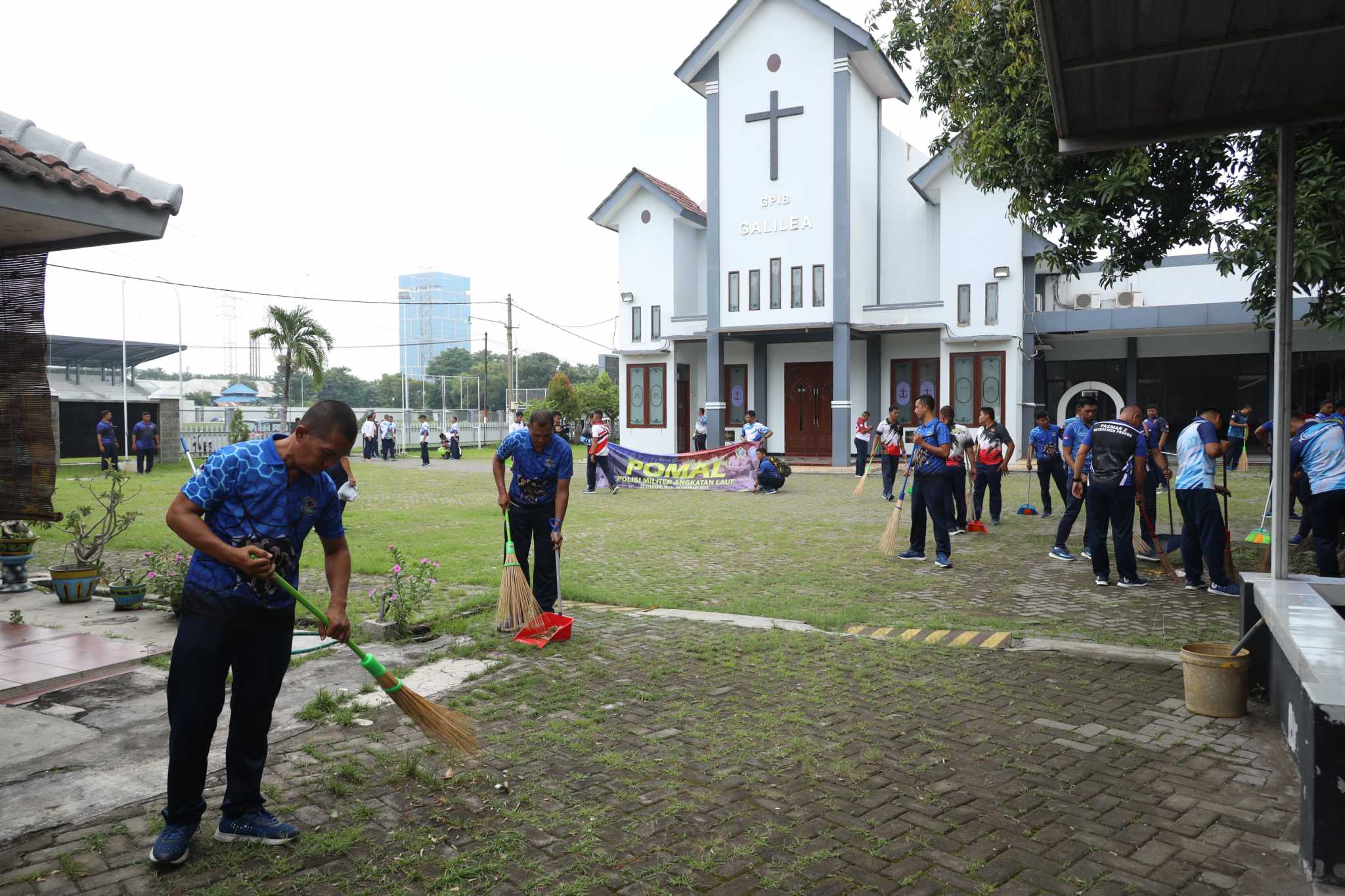 Adapun tempat ibadah yang menjadi sasaran kegiatan ini antara lain Masjid Ampel, Pura Jala Wira Dharma Koarmada II, dan Gereja GPIB Galilea. Dengan semangat kebersamaan, para prajurit bahu-membahu membersihkan area ibadah, menciptakan lingkungan yang lebih nyaman dan asri bagi para jamaah.