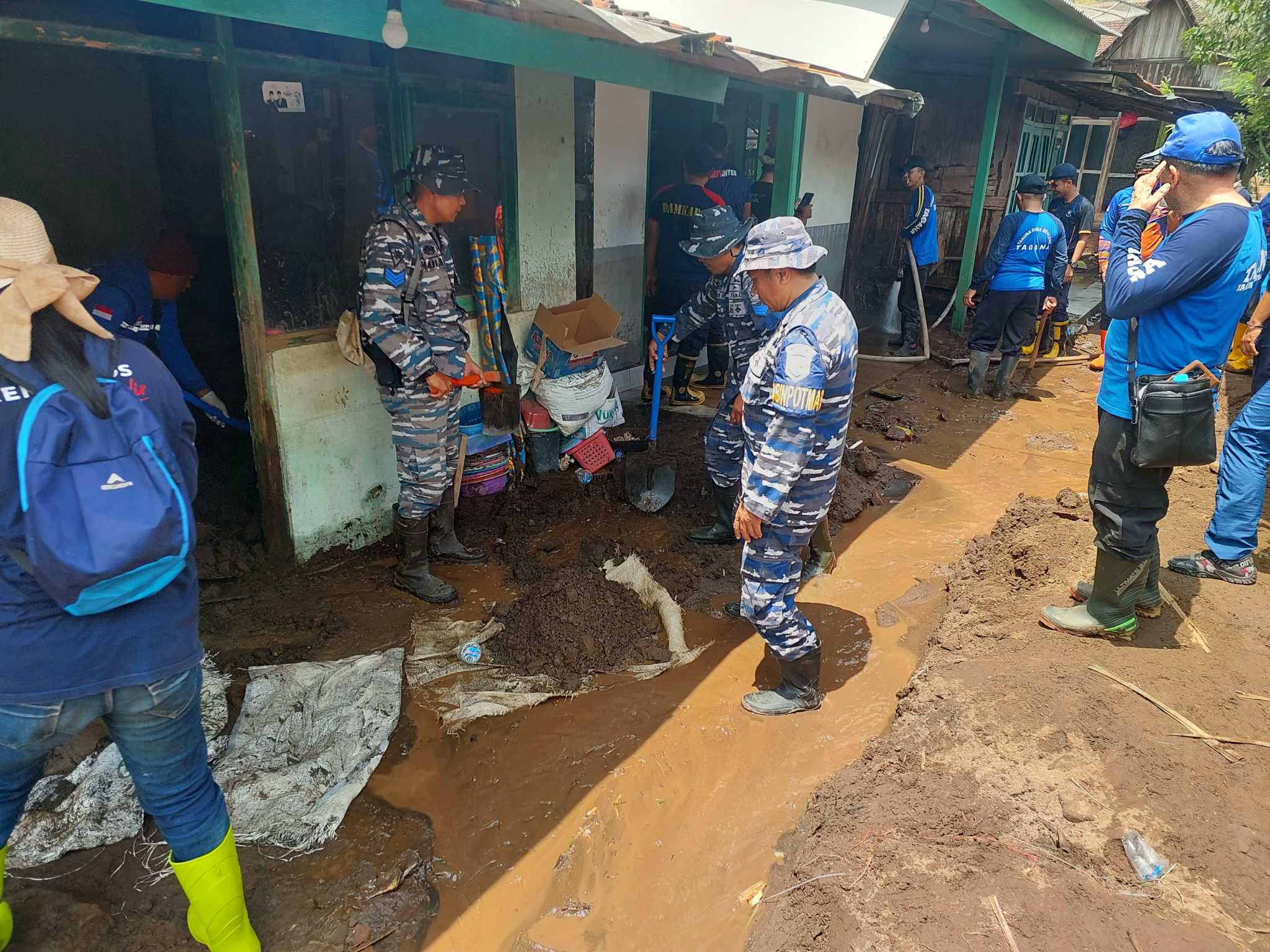 Selain menyalurkan bantuan, prajurit Posal Panarukan juga turut membantu warga membersihkan sisa-sisa material yang terbawa arus banjir. Kolaborasi antara TNI AL, pemerintah daerah, serta relawan dan warga setempat menjadi kunci dalam percepatan pemulihan pasca-bencana.