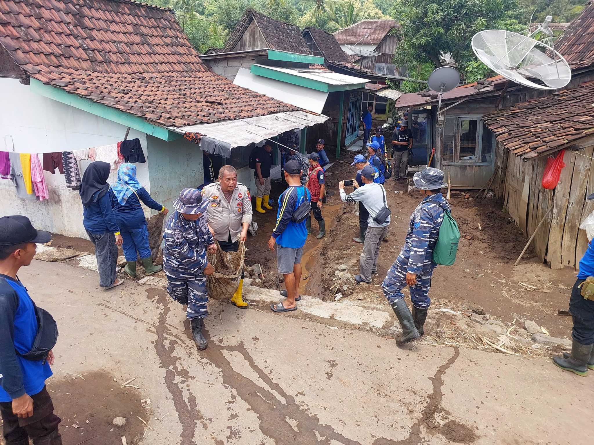 Prajurit Pos TNI AL (Posal) Panarukan, jajaran Lanal Banyuwangi Koarmada II, bersama stake holder terkait bergerak cepat membantu masyarakat yang terdampak banjir di Desa Tambak Ukir dan Desa Rajekwesi, Kecamatan Kendit, Kabupaten Situbondo. Bantuan diberikan dalam bentuk penyaluran logistik serta kerja bakti membersihkan area yang terdampak pasca-banjir, Jumat (7/2).