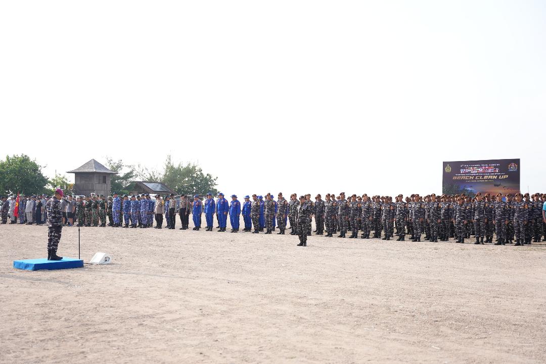 Kepala Dinas Pembinaan Potensi Maritim TNI AL (Kadispotmaral) Brigjen TNI (Mar) TNI Sugianto, secara resmi membuka kegiatan Beach Clean Up. Dalam sambutannya Kadispotmaral mengatakan bahwa kegiatan Beach Clean Up pada hari ini merupakan rangkaian kegiatan MNEK Ke-5 Tahun 2025.