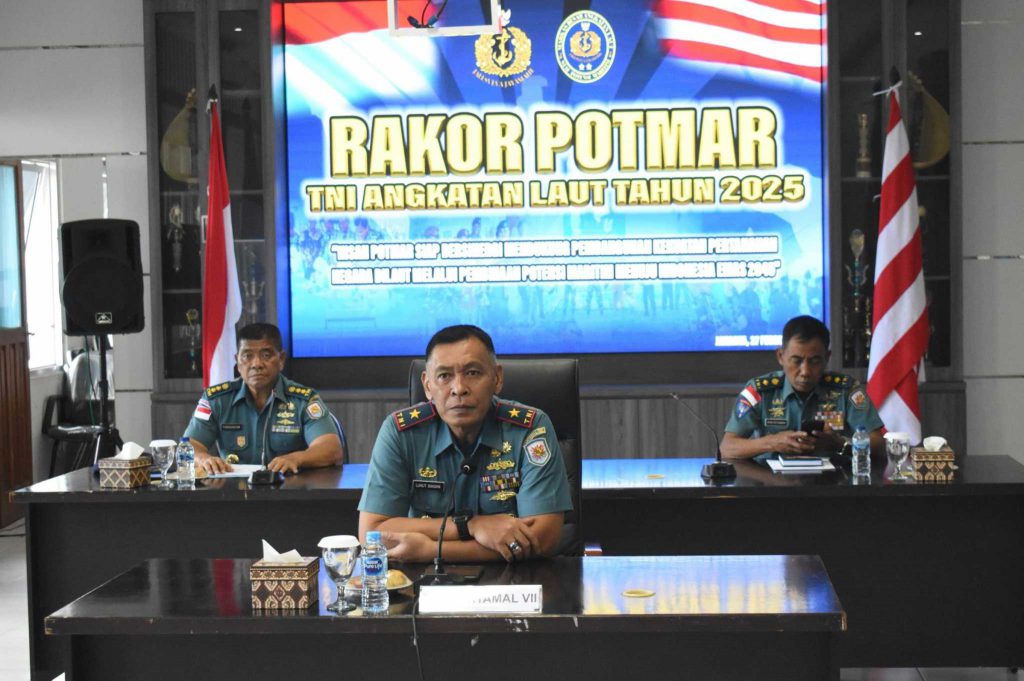 DUKUNG KEKUATAN PERTAHANAN DI LAUT, DANLANTAMAL VII HADIRI RAKOR POTMAR TNI AL 2025