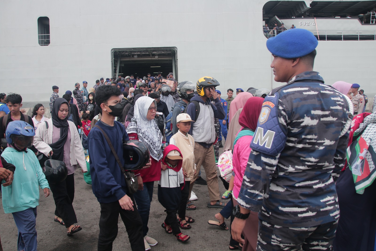 Komandan Pangkalan TNI AL (Danlanal) Semarang jabatan Koarmada II, Letkol Laut (P) Akbar Abdullah, M.Tr.Opsla, bersama Walikota Semarang, Dr. Agustina Wilujeng Pramestuti, S.S., M.M., serta Forum Koordinasi Pimpinan Daerah (Forkopimda) Kota Semarang, menyambut sekaligus melepas peserta Mudik Gratis Tahun 2025 menggunakan Kapal Perang Republik Indonesia (KRI) Banjarmasin-592. Acara ini berlangsung di Dermaga Nusantara 2, Pelabuhan Tanjung Emas, Semarang, pada Jumat (28/3).