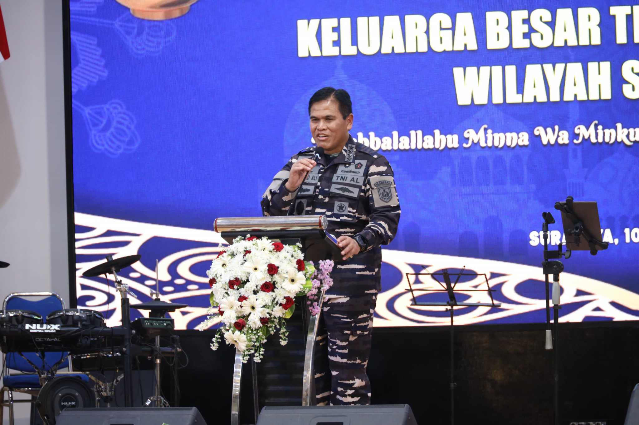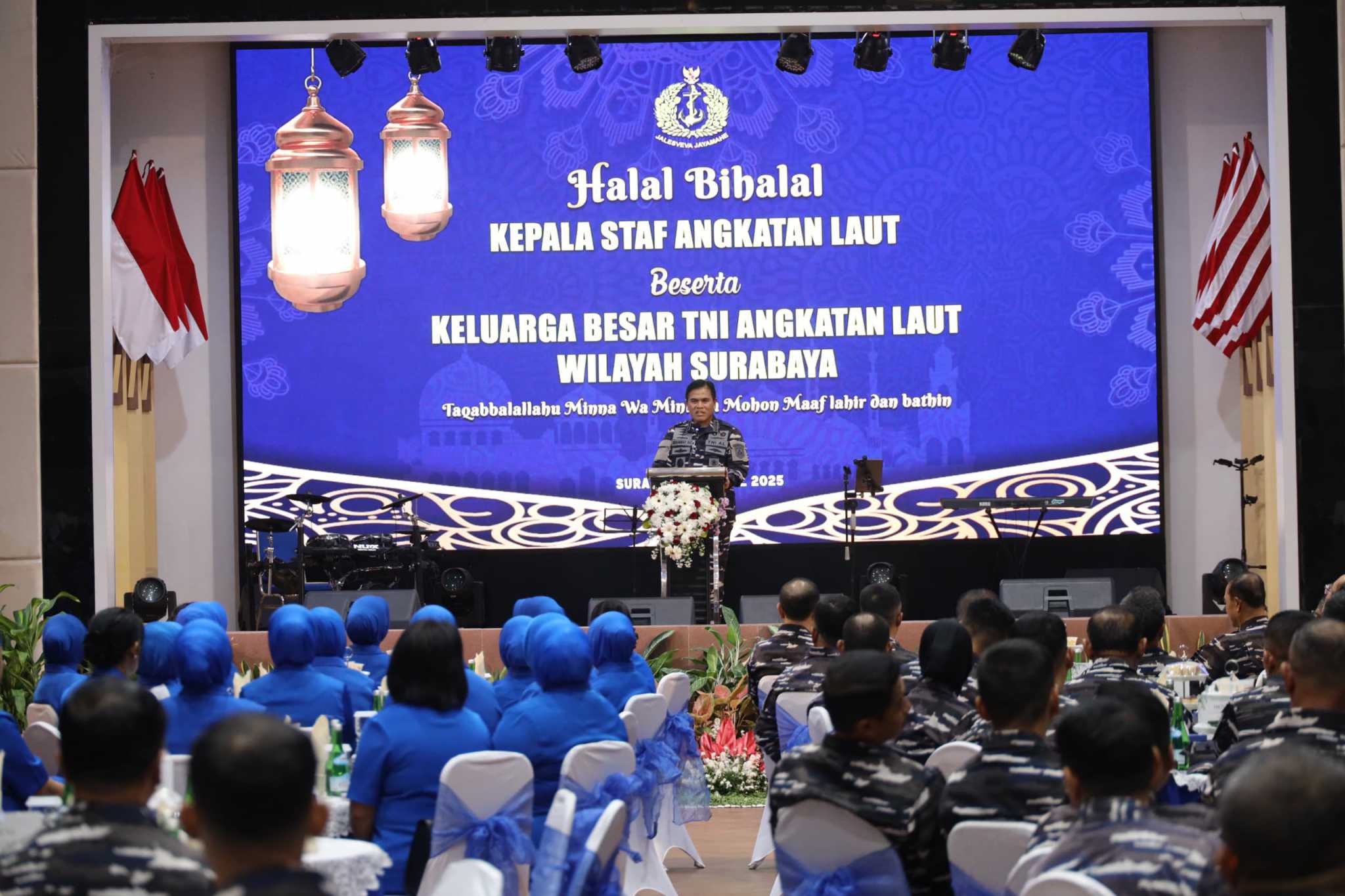 Masih dalam suasana Hari Raya Idul Fitri 1446 Hijriyah, Kepala Staf Angkatan Laut (Kasal) Laksamana TNI Dr. Muhammad Ali, S.E.,M.M., M.Tr.Opsla , menggelar acara halal bihalal bersama dengan para Pejabat Utama TNI AL, dan para Pimpinan Kotama TNI AL, serta segenap keluarga besar TNI AL lainnya di Gedung Panti Tjahaya Armada (PTA) Koarmada II, Ujung, Surabaya, pada Kamis (10/4).