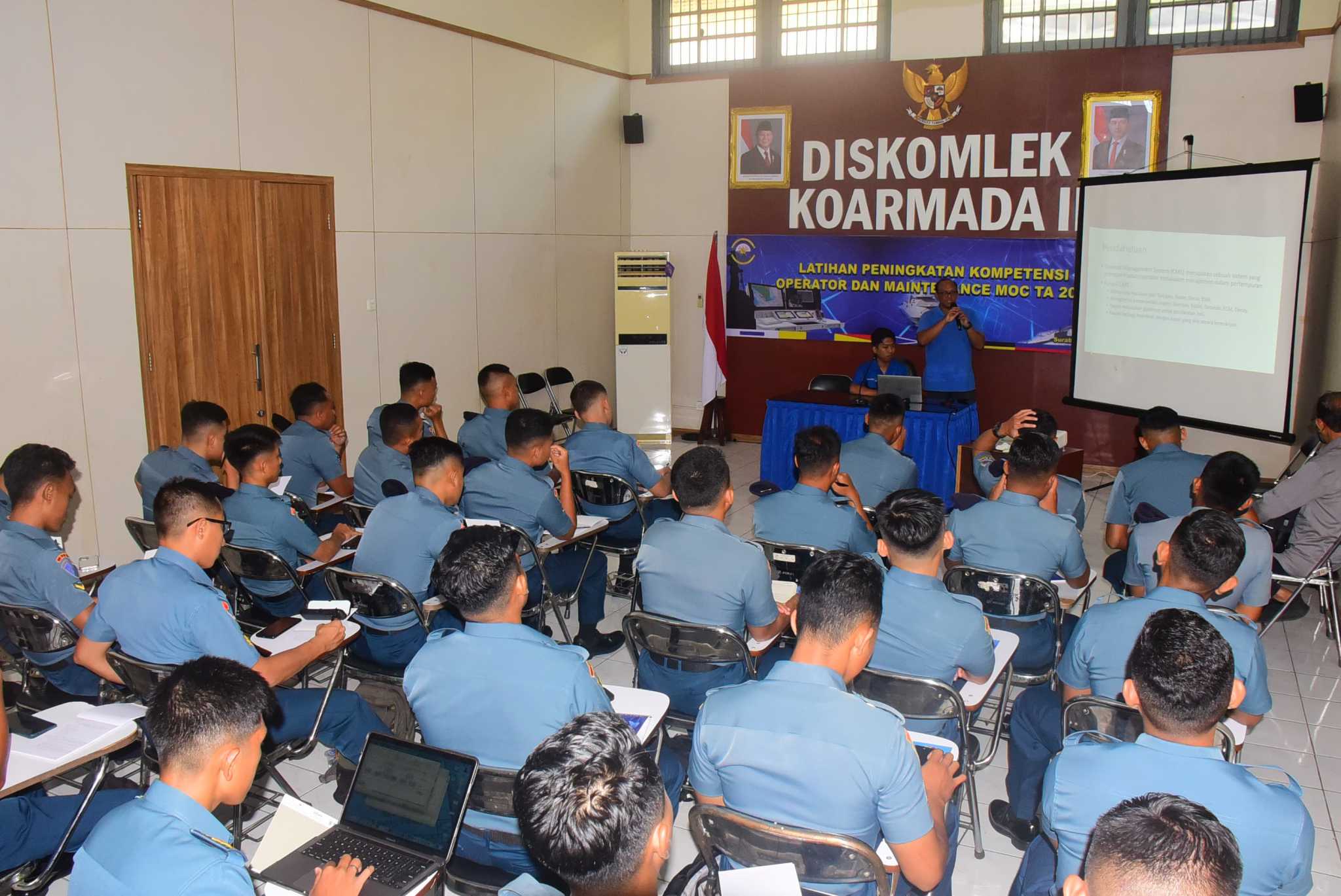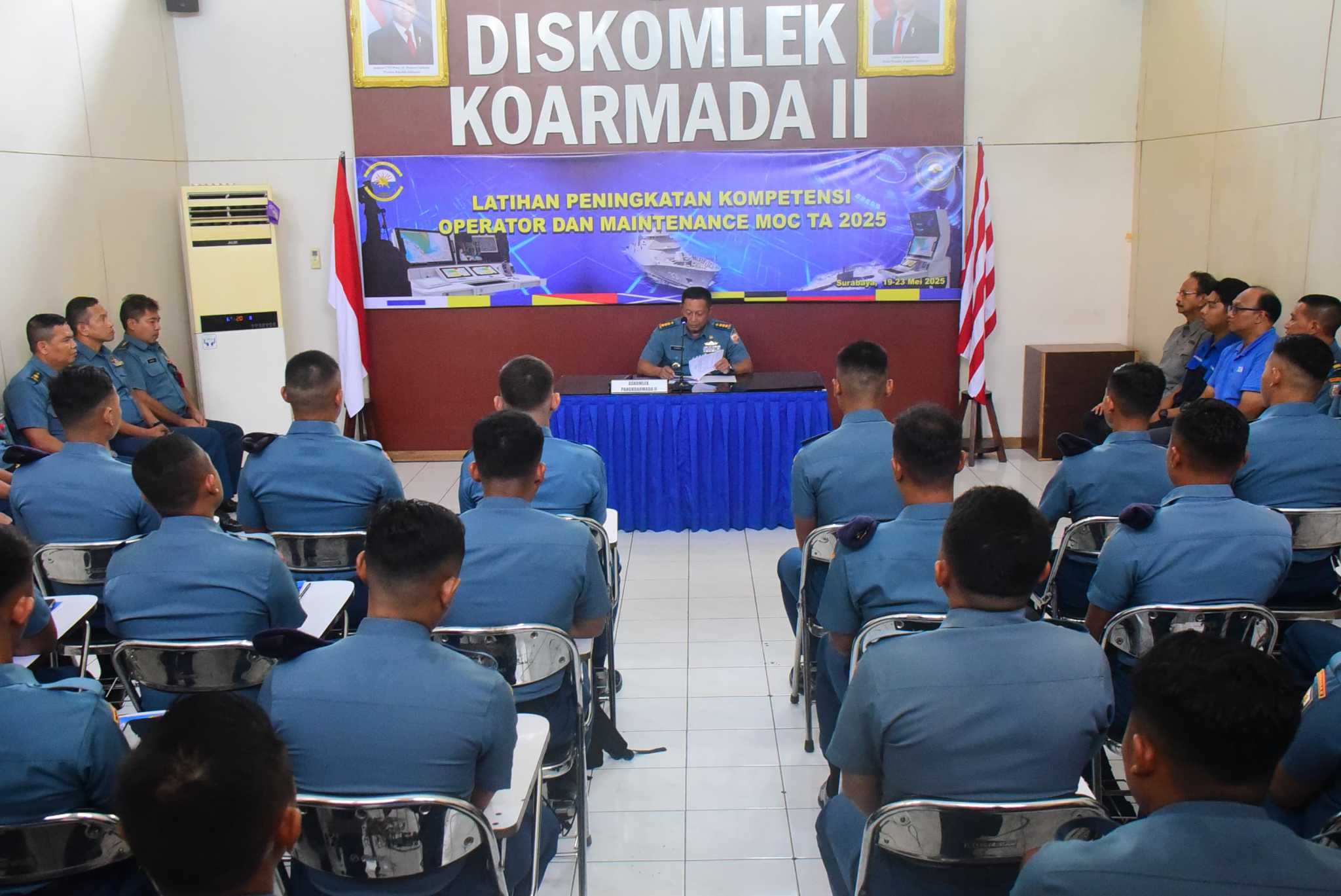 Asisten Dinas Komunikasi dan Elektronika (Askomlek) Koarmada II, Kolonel Laut (P) Dados Raino, secara resmi membuka Pelatihan Peningkatan Kompetensi Operator dan Maintenance Multifunction Operator Console (MOC), Bertempat di ruang kelas Dinas Komunikasi dan Elektronika (Diskomlek) Koarmada II Ujung Surabaya. Senin (19/5).