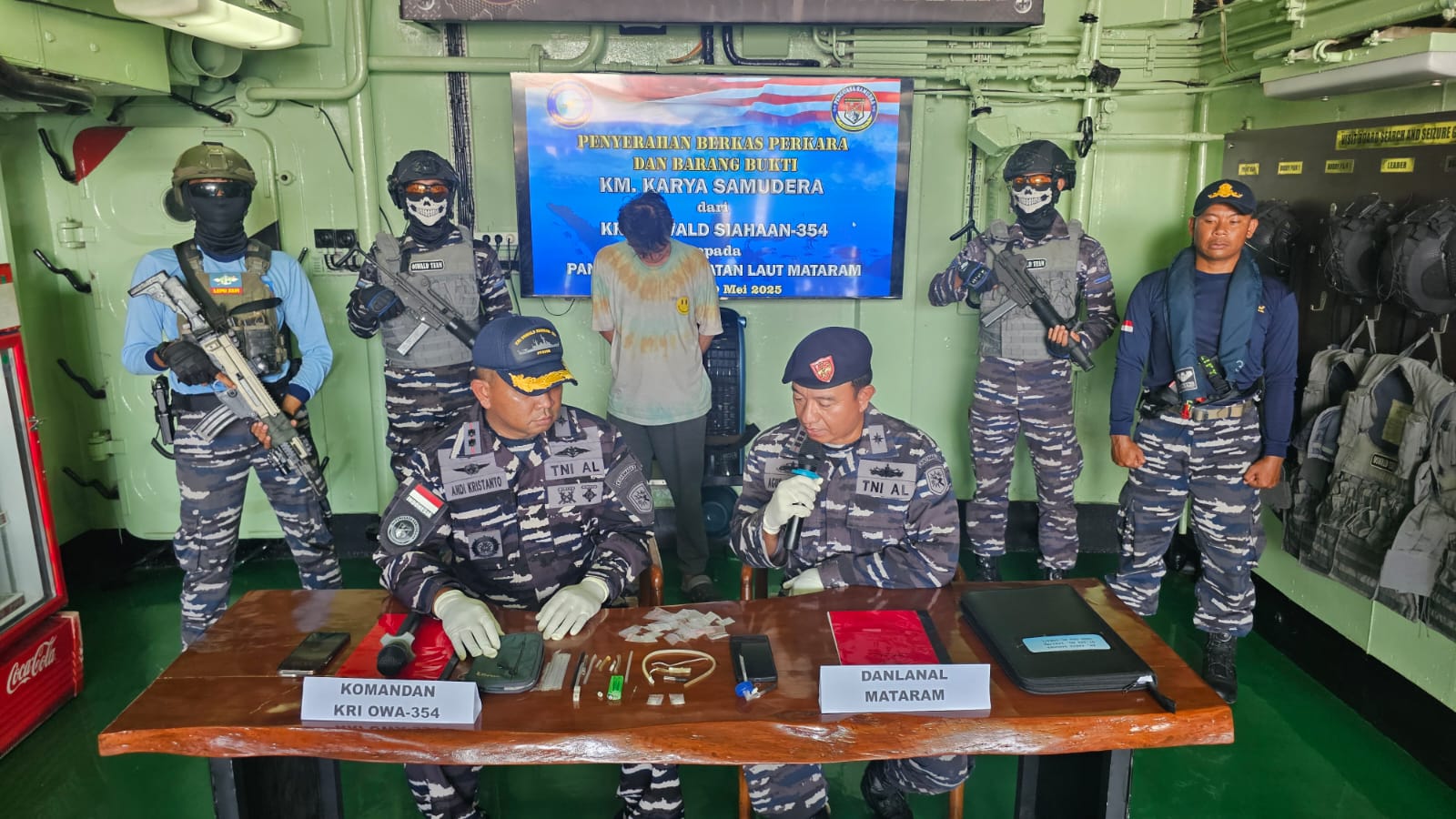 Komandan KRI Oswald Siahaan-354, Letkol Laut (P) Andi Kristianto, M.Tr.Hanla., membenarkan penangkapan tersebut. “Saat akan dilaksanakan pemeriksaan dan penggeledahan, KM Karya Samudra bermanuver untuk menghindari KRI OWA. Dalam proses penggeledahan ditemukan narkotika berupa Sabu Sabu dan alat hisap di kamar nakhoda kapal. Saat ini KM Karya Samudera dan barang bukti Sabu-Sabu telah diserahkan di Pangkalan TNI AL Mataram untuk dilakukan penyidikan lebih lanjut,” terang Letkol Laut (P) Andi Kristianto.