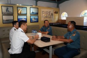 Panglima Komando Armada (Pangkoarmada) II Laksda TNI I G. P. Alit Jaya, S.H., M.Si., menerima kunjungan kehormatan dari Fleet Commander Republic of Singapore Navy (RSN), Rear Admiral (RADM) Kwan Hon Chuong, di Gedung VIP Nala, Markas Koarmada II, Selasa (1/7). Kunjungan ini merupakan bagian dari kegiatan muhibah serta bekal ulang unsur RSN yang tengah melaksanakan pelayaran di wilayah perairan Indonesia.