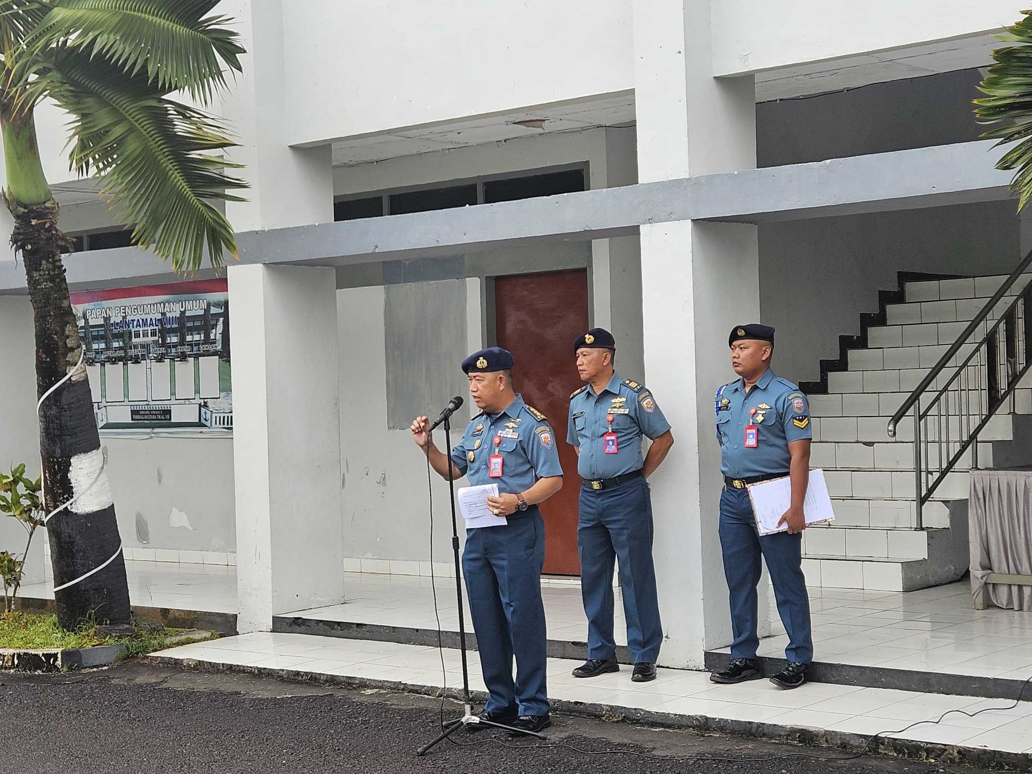 Manado 9 Juli 2025, Danlantamal VIII Laksamana Pertama TNI May Franky Pasuna Sihombing, CHRMP., diwakili Kadiskum Lantamal VIII melaksanakan Jam Komandan kepada seluruh personel Lantamal VIII bertempat di Lapangan Apel Denma Lantamal VIII. Rabu (9/7)