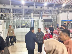 Wakil Komandan (Wadan) Lantamal VI Kolonel Laut Nopriadi, M.Tr.Hanla menyambut kedatangan Wakil Menteri Pertahanan Republik Indonesia (Wamenhan RI) Marsekal Madya TNI (Purn) Donny Ermawan T., M.D.S., M.S.P. bertempat di Bandara Sultan Hasanuddin Makassar, Rabu (16/07/2025).