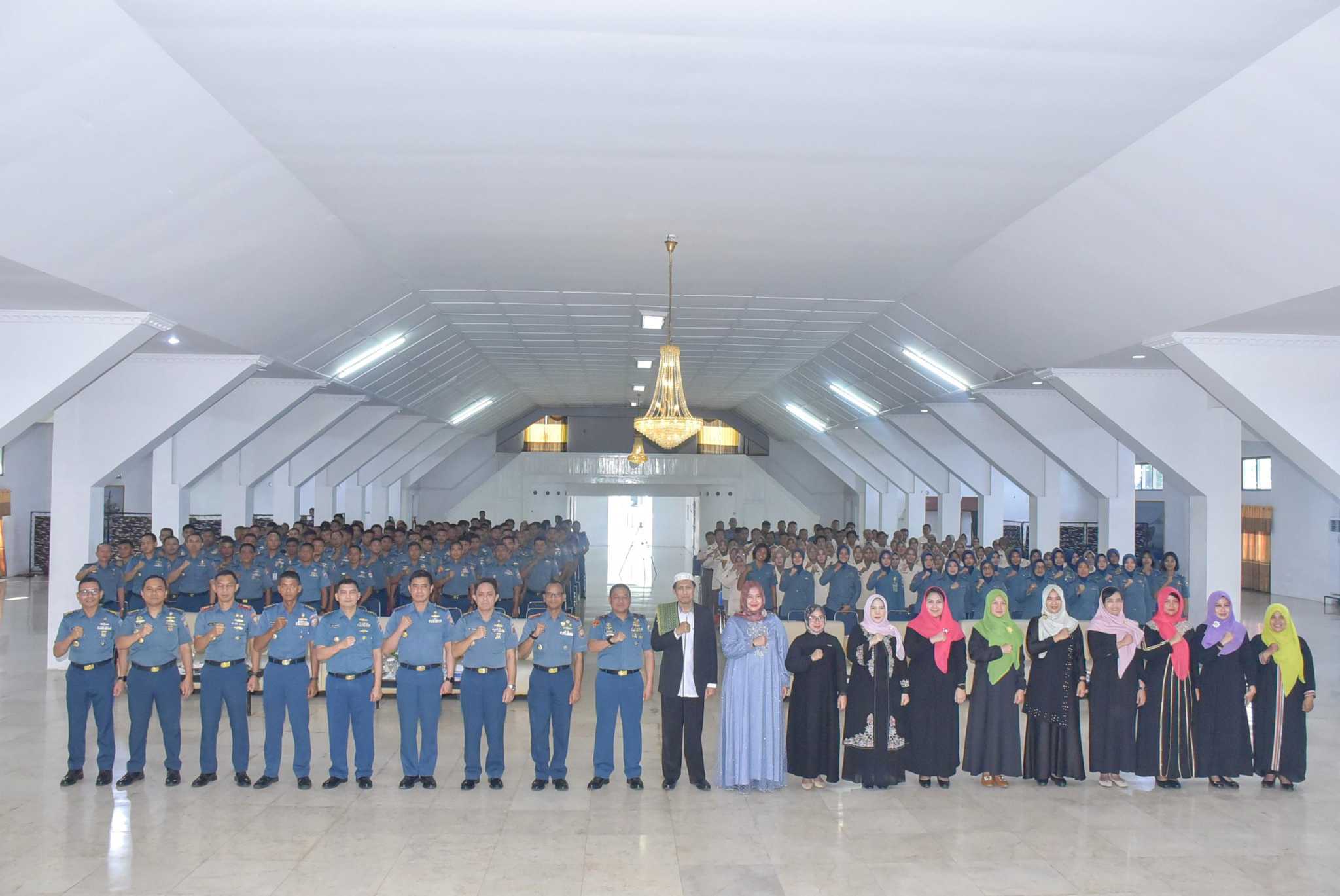 Makassar, Komandan Lantamal VI (Danlantamal VI) Makassar Brigadir Jenderal TNI (Mar) Dr. Wahyudi, S.E., M.Tr.Hanla., M.M., M.Han., beserta Ketua Korcab VI Daerah Jalasenastri Armada II (DJA II) Ny. Afrina Amalia Wahyudi menghadiri peringatan Tahun Baru Islam 1447 H/2025 M dengan tema “Hijrah, Berani Berubah, Menjaga Amanah dan Perkuat Ukhuwah Menuju Masa Depan Penuh Berkah” bertempat di Gedung Hasanuddin Mako Lantamal VI, Rabu (30/07/2025).