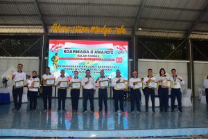 Dalam rangka memberikan apresiasi kepada prajurit yang telah mengharumkan nama baik Koarmada II melalui pencapaian prestasi membanggakan, Pangkoarmada II Laksda TNI I G. P. Alit Jaya, S.H., M.Si., bersama Ketua Daerah Jalasenastri Armada II Ny. Yully Alit Jaya, menggelar acara “Koarmada II Awards” di Indoorsport Koarmada II, Selasa (12/8).