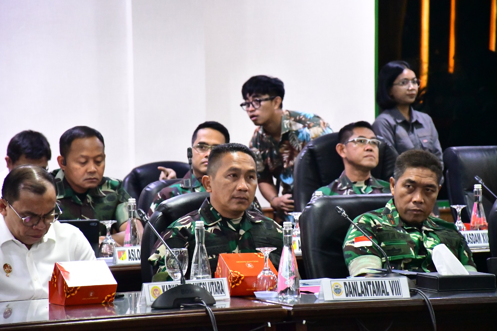 Manado 14 Agustus 2025, Komandan Kodaral VIII Laksda TNI Dery Triesananto Suhendi, S.E., M.Tr.Opsla., diwakili Wadan Kodaeral VIII mengikuti Rapat Koordinasi (Rakor) Sinergitas Stakeholders Pengamanan Perbatasan Indonesia-Filipina dan Mitigasi Isu Persons of Philippines Descent (PPDs) bertempat di Ruang Yudha Makodam XIII/Merdeka. Kamis (14/8)