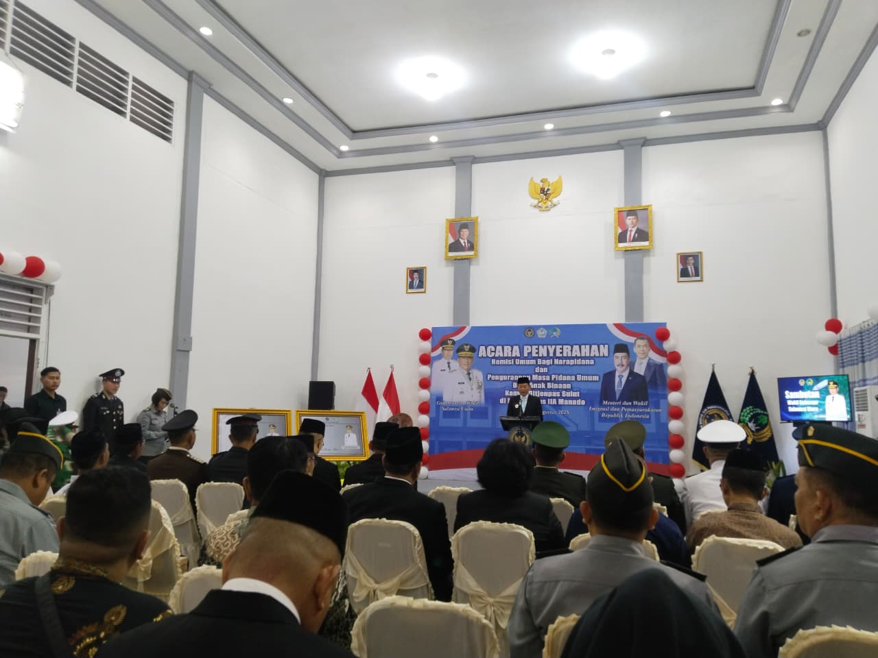 Manado 17 Agustus 2025, Komandan Kodaeral VIII Laksda TNI Dery Triesananto Suhendi, S.E., M.Tr.Opsla., yang diwakili oleh Kadiskum Kodaeral VIII menghadiri Acara Pemberian Remisi yang bertempat di Lapas Kelas II A Tuminting Manado. Minggu (17/8)
