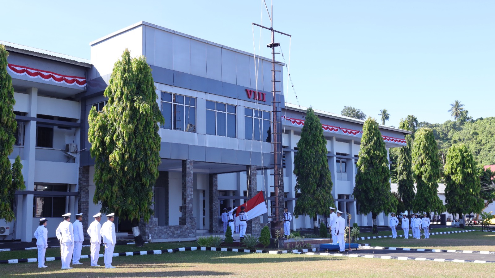 Manado, 17 Agustus 2025 Komandan Kodaeral VIII Laksda TNI Dery Triesananto Suhendi, S.E., M.Tr.Opsla., diwakili Asops Kodaeral VIII melaksanakan Upacara Bendera peringati Hari Ulang Tahun Ke-80 Republik Indonesia yang bertempat di Lapangan Apel Mako Kodaeral VIII Manado. Minggu (17/8).