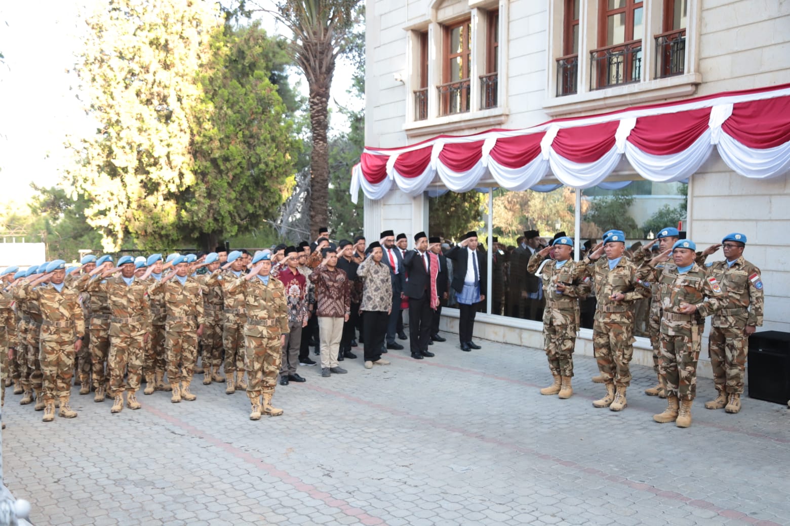 Upacara yang berlangsung di halaman KBRI Lebanon tersebut dipimpin oleh Duta Besar Luar Biasa dan Berkuasa Penuh (LBBP) RI untuk Lebanon, Dicky Komar, selaku Inspektur Upacara, dengan Wadansatgas MTF TNI Konga XXVIII-P/UNIFIL Letkol Laut (P) Zakaria A. Rijal bertindak sebagai Komandan Upacara. Momentum ini menjadi pengingat bahwa meski jauh dari tanah air, semangat nasionalisme tetap tertanam kuat di dada para prajurit TNI.