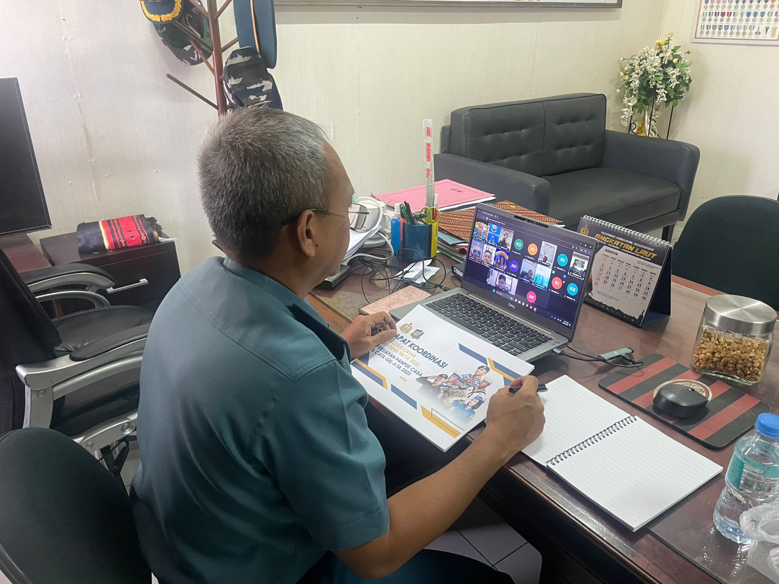 Manado 20 Agustus 2025, Dankodaeral VIII Laksda TNI Dery Triesananto Suhendi, S.E., M.Tr.Opsla., diwakili Aspers Dankodaeral VIII mengikuti Rapat Sidang Wankarbidkat secara vicon bertempat di Ruang Kerja Aspers Dankodaeral VIII. Rabu (20/8)