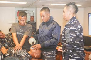 Tidak hanya itu, pengetahuan mengenai Bantuan Hidup Dasar (BHD) juga dipaparkan oleh dokter dari Diskes Koarmada II, Lettu Laut (K) dr. Adhitya Nur Firmansyah, bertempat di Lounge Room Bintara KRI REM-331. Materi ini memberikan bekal penting kepada prajurit TNI AL agar mampu melakukan pertolongan pertama secara tepat jika menghadapi kondisi darurat atau korban kecelakaan di lapangan.