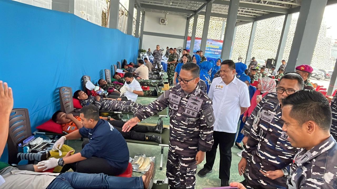 Satgas Trisila 25/III Gugus Tempur Laut (Guspurla) Koarmada II menggelar aksi sosial Donor Darah, bertempat di Shelter Angkutan Mako Lanal Kendari, Jumat (29/8). Kegiatan ini merupakan wujud nyata implementasi tugas pokok TNI AL dalam mendukung kebijakan pemerintah sekaligus memberikan manfaat bagi masyarakat sekitar.