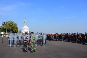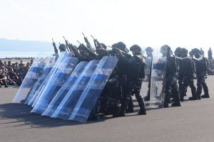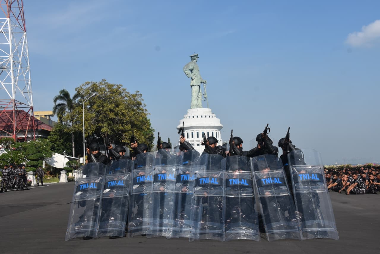 Dalam rangka memaksimalkan kesiapsiagaan pengamanan aksi demonstrasi nasional, prajurit Komando Armada II melaksanakan Latihan Pasukan Huru Hara (PHH) yang dipusatkan di Dermaga Madura Koarmada II, Ujung Surabaya, Senin (1/9). Latihan ini merupakan bentuk antisipasi TNI AL terhadap perkembangan situasi keamanan di tanah air, khususnya di wilayah Surabaya, Jawa Timur.