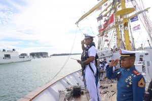 KRI Bima Suci unsur Satban Koarmada II, dengan Komandan Letkol Laut (P) Sugeng Hariyanto, bersama Taruna Akademi Angkatan Laut (AAL) Angkatan ke-72, tiba dan sandar di Dermaga Royal Brunei Naval Base, Jumat (5/9). Kehadiran kapal latih layar tiang tinggi kebanggaan TNI AL ini merupakan bagian dari pelayaran misi diplomasi muhibah duta bangsa sekaligus Latihan Praktek Kartika Jala Krida 2025 (KJK 2025).