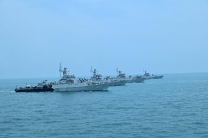 Menjelang pelaksanaan Presidential Inspection dalam rangka HUT ke-80 TNI, unsur-unsur KRI jajaran Koarmada II bersama satuan TNI AL lainnya melaksanakan gladi bersih Demo Laut, Sailing Pass, dan Flying Pass di Perairan Teluk Jakarta, Senin (29/9).