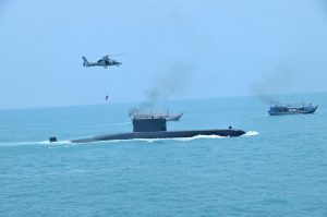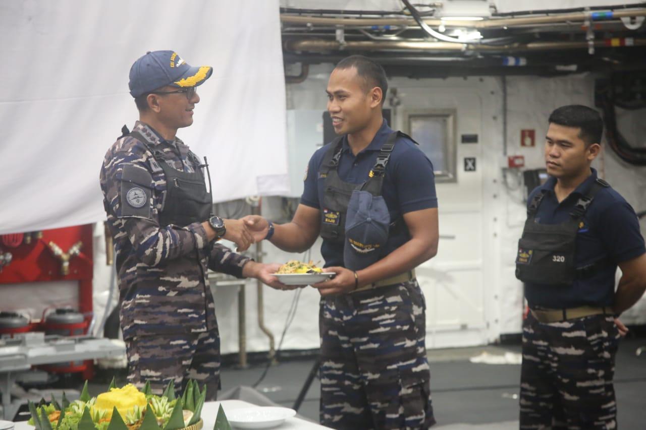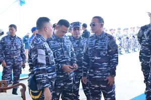 Wakil Kepala Staf Angkatan Laut (Wakasal) Laksdya TNI Erwin S. Aldedharma hadir meninjau langsung jalannya latihan, dari KRI dr. Radjiman Wedyodiningrat-992 (KRI RJW-992) yang bertugas sebagai kapal markas.