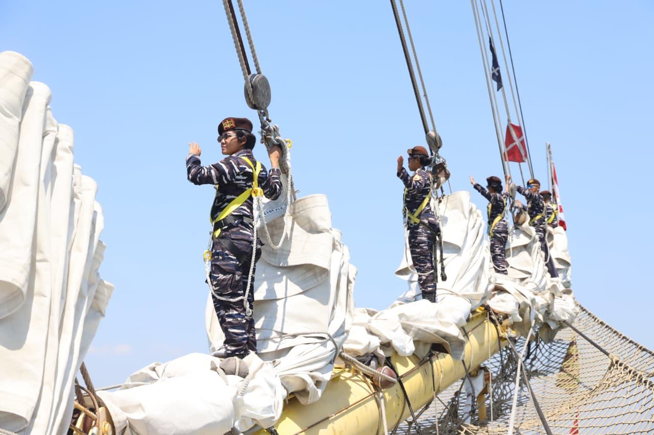 Menariknya, sebelum kembali ke Surabaya, KRI Bima Suci turut berpartisipasi dalam kegiatan Presidential Inspection di Perairan Teluk Jakarta dalam rangka peringatan HUT ke-80 TNI. Kehadiran KRI Bima Suci di ajang tersebut menegaskan peran penting kapal latih ini sebagai simbol kebanggaan dan kekuatan diplomasi maritim TNI Angkatan Laut.